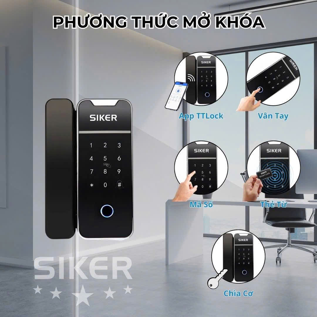 🔐 Khóa Thông Minh Siker KTK204 – Giải Pháp Công Nghệ Cho Cửa Kính Hiện Đại